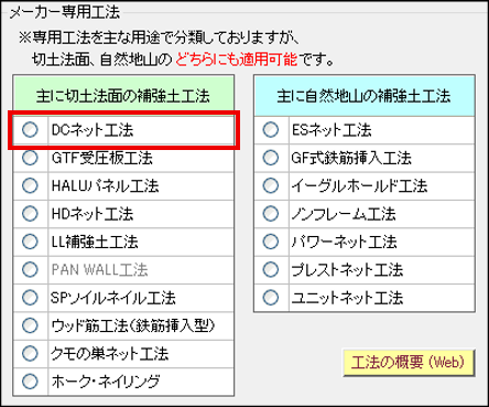 ◆メーカー専用工法に「DCネット工法」を追加 【Ver. 15.02】 |
