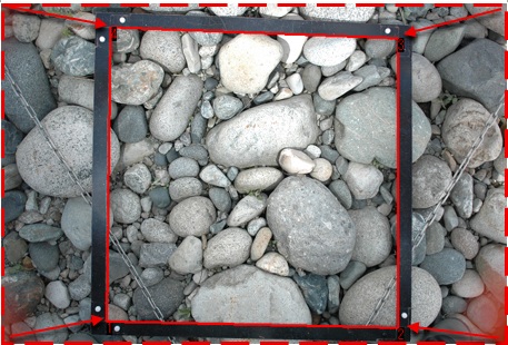 画像をシステムに取り込み、スケールに合わせて射影変換して画像のゆがみを補正します。
