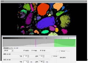 検出粒子のサイズを集計し度数累積分布を算出。粒径加積曲線を作成します。