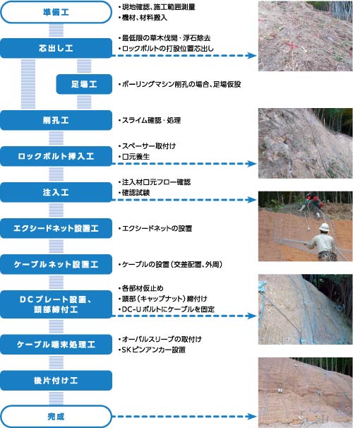 DCネット工法は、切土のり面や自然斜面の崩壊防止、並びに崩壊地対策に適した対策工である。