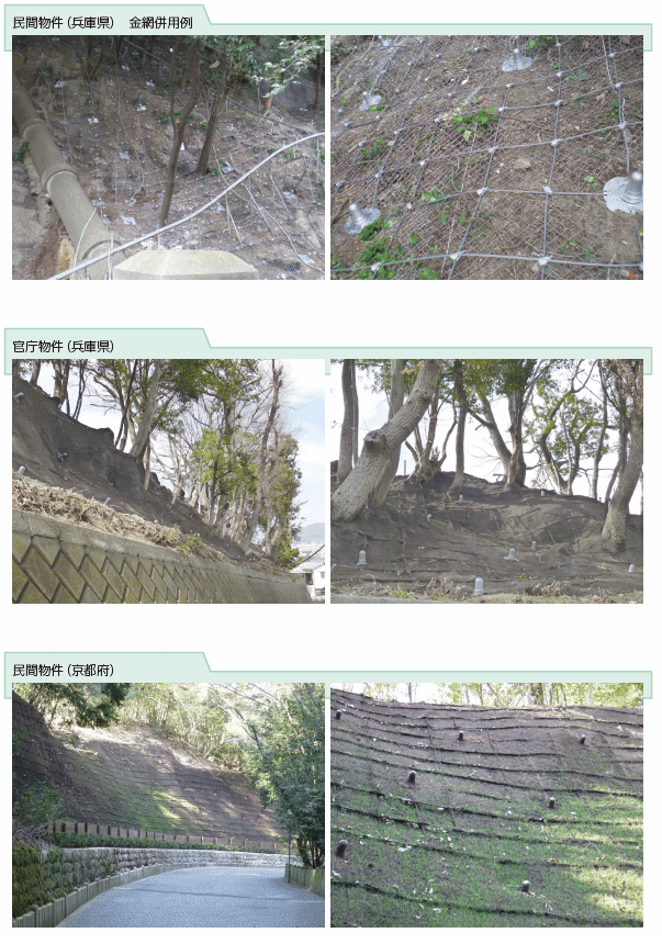 • 既存木を残したまま施工可能であるため、緑化の重要度が高い斜面に適している。